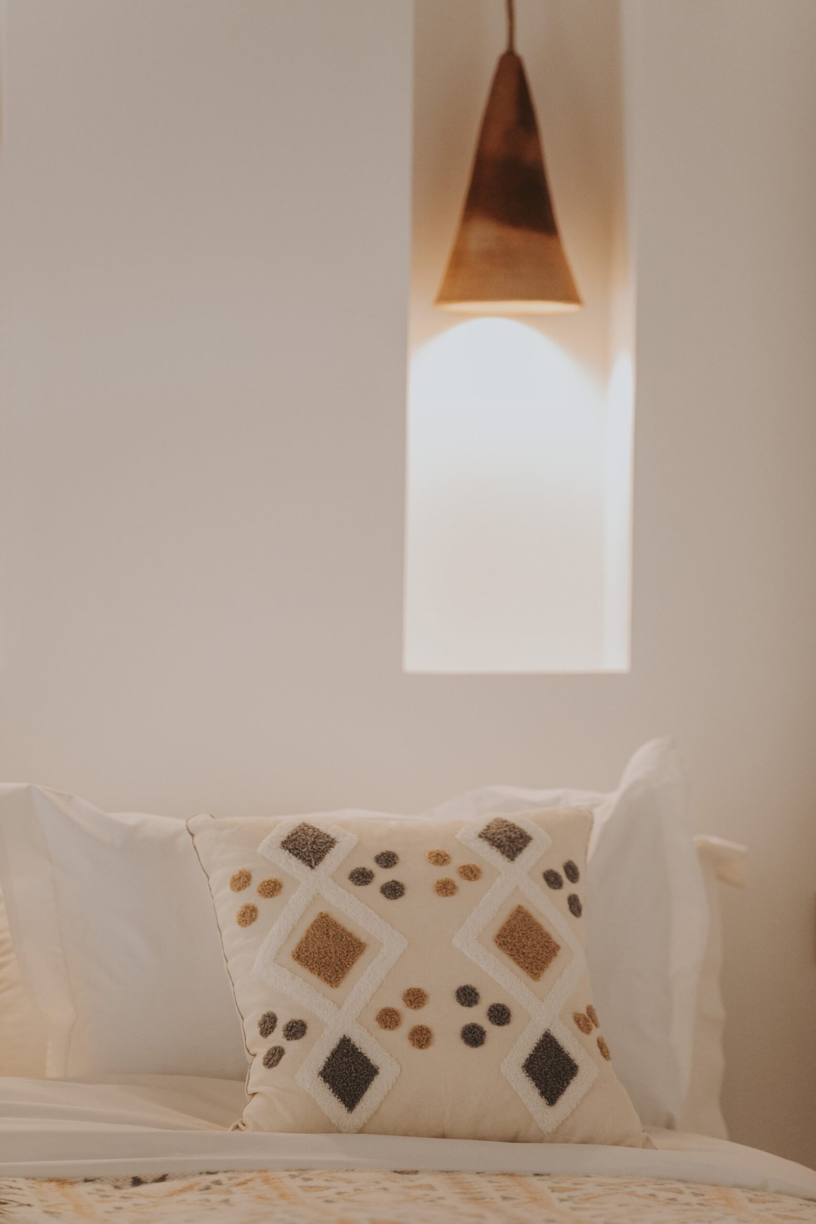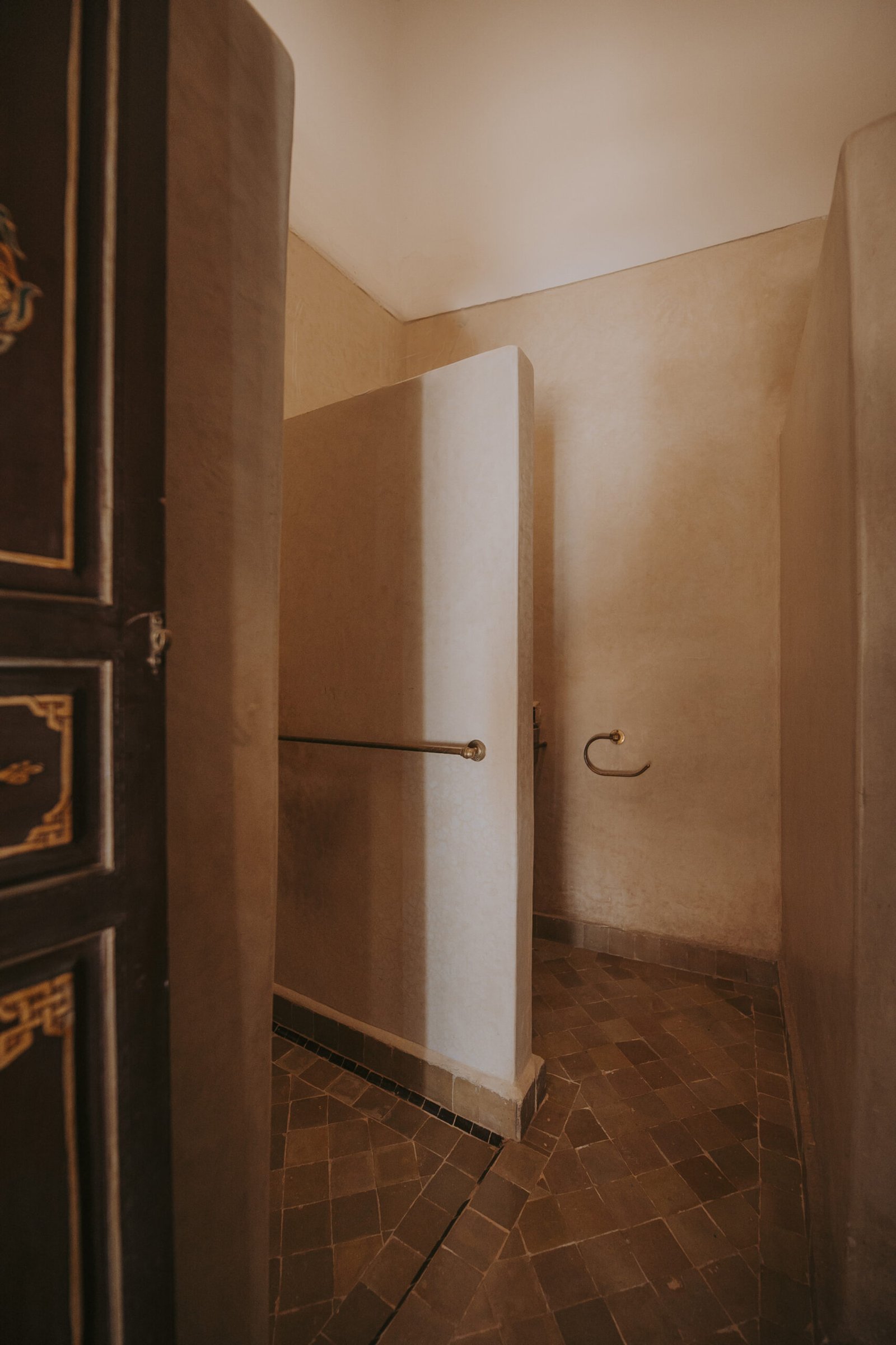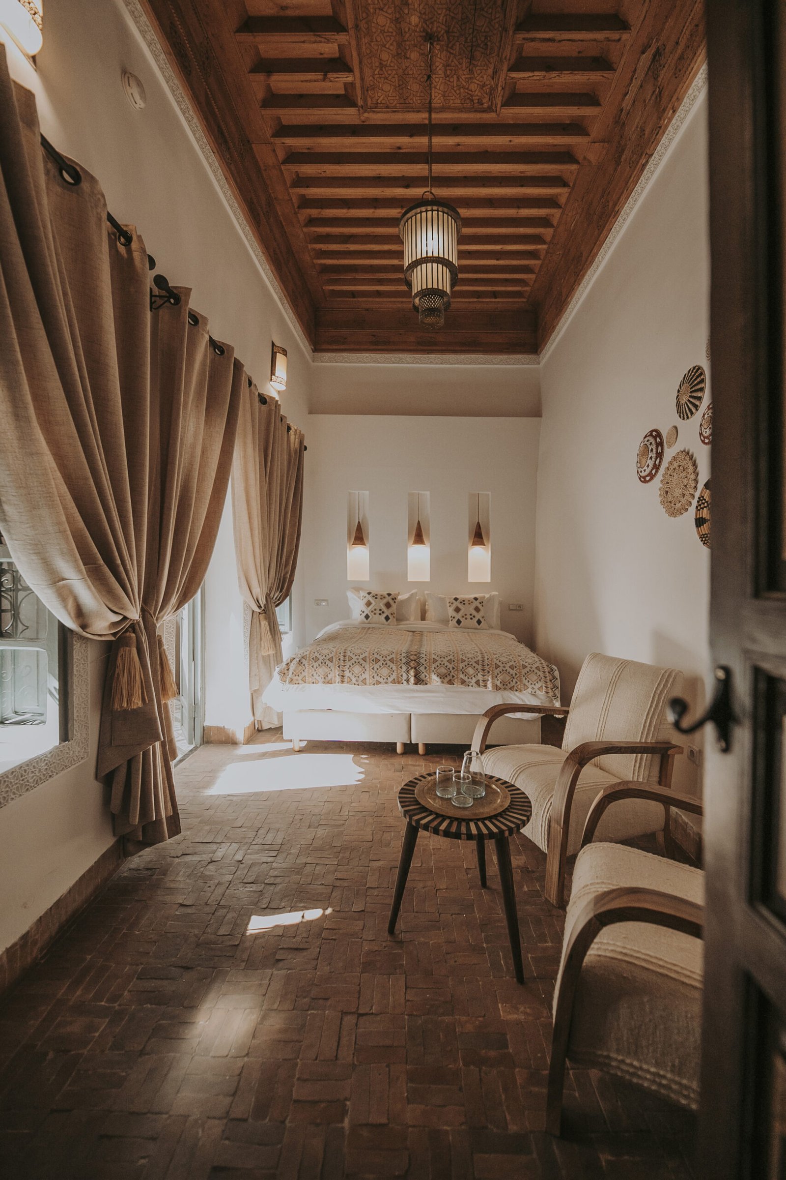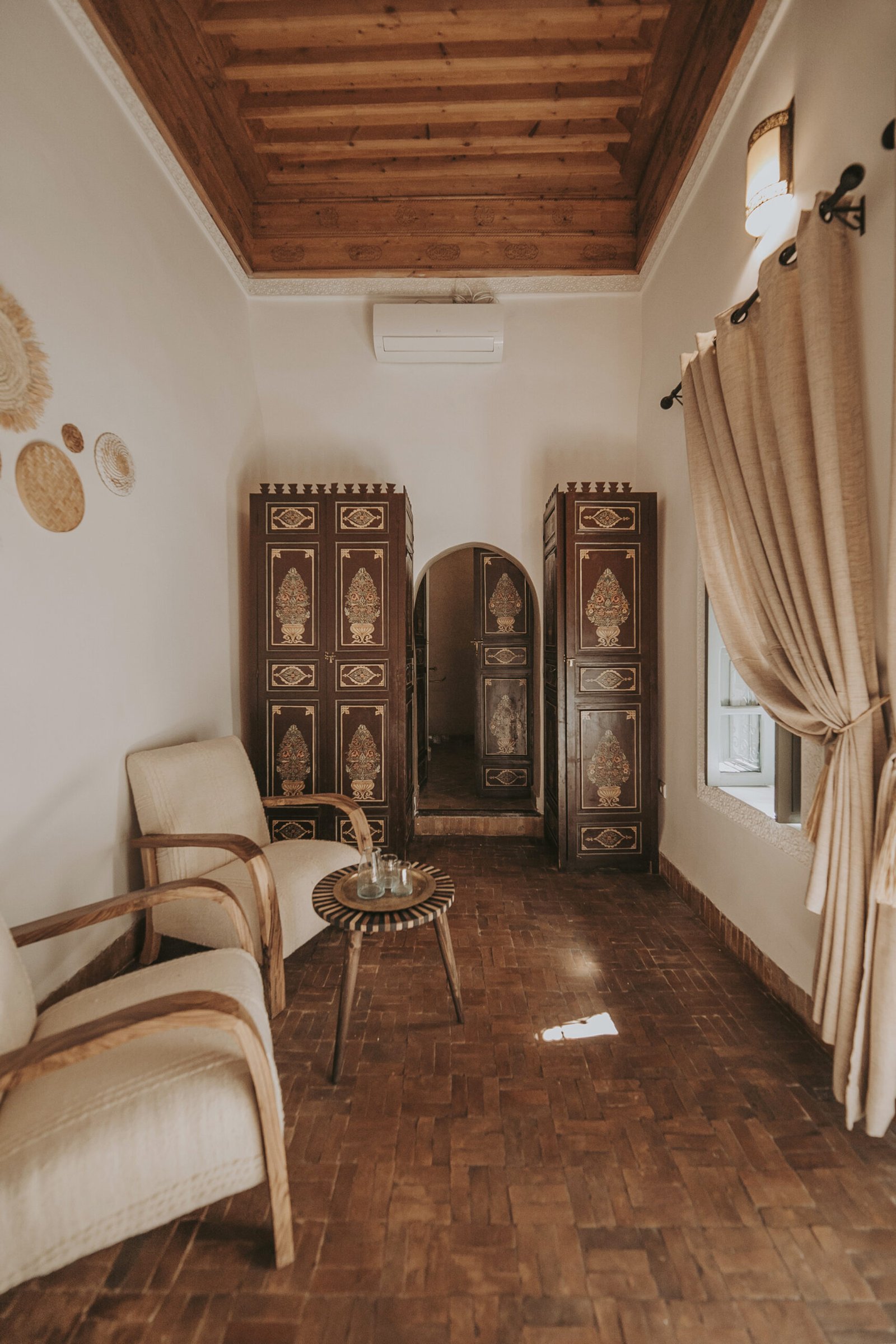 With its soft and bright atmosphere, this room draws inspiration from the southern Moroccan oases. Hand-carved wood, natural materials, and warm neutral tones create a calm and inviting space. Located on the first floor, the room opens onto the gallery overlooking the central courtyard.